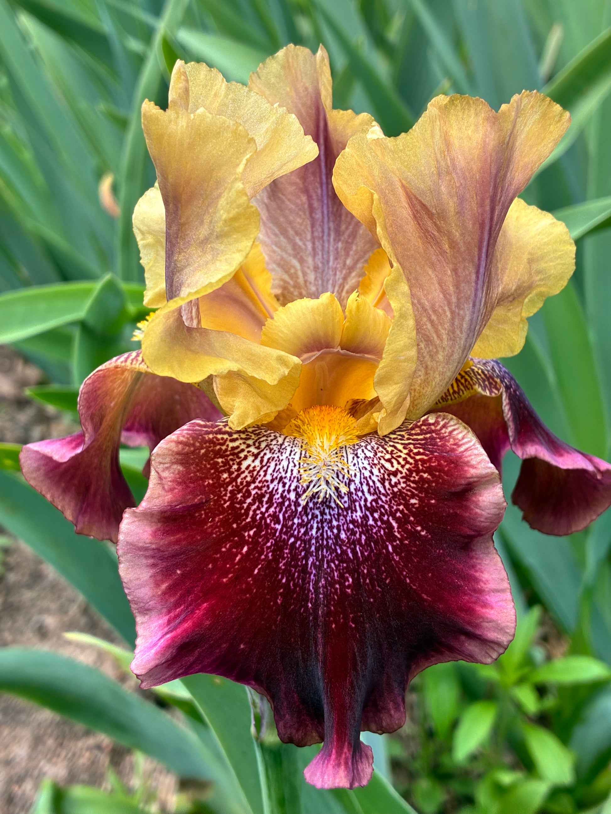 A midseason bloomer with golden standards subtly touched with light burgundy undertones, paired with light burgundy falls edged with a delicate 1 cm pink border. This iris offers a refined, elegant colour palette that adds depth and sophistication to any garden display.