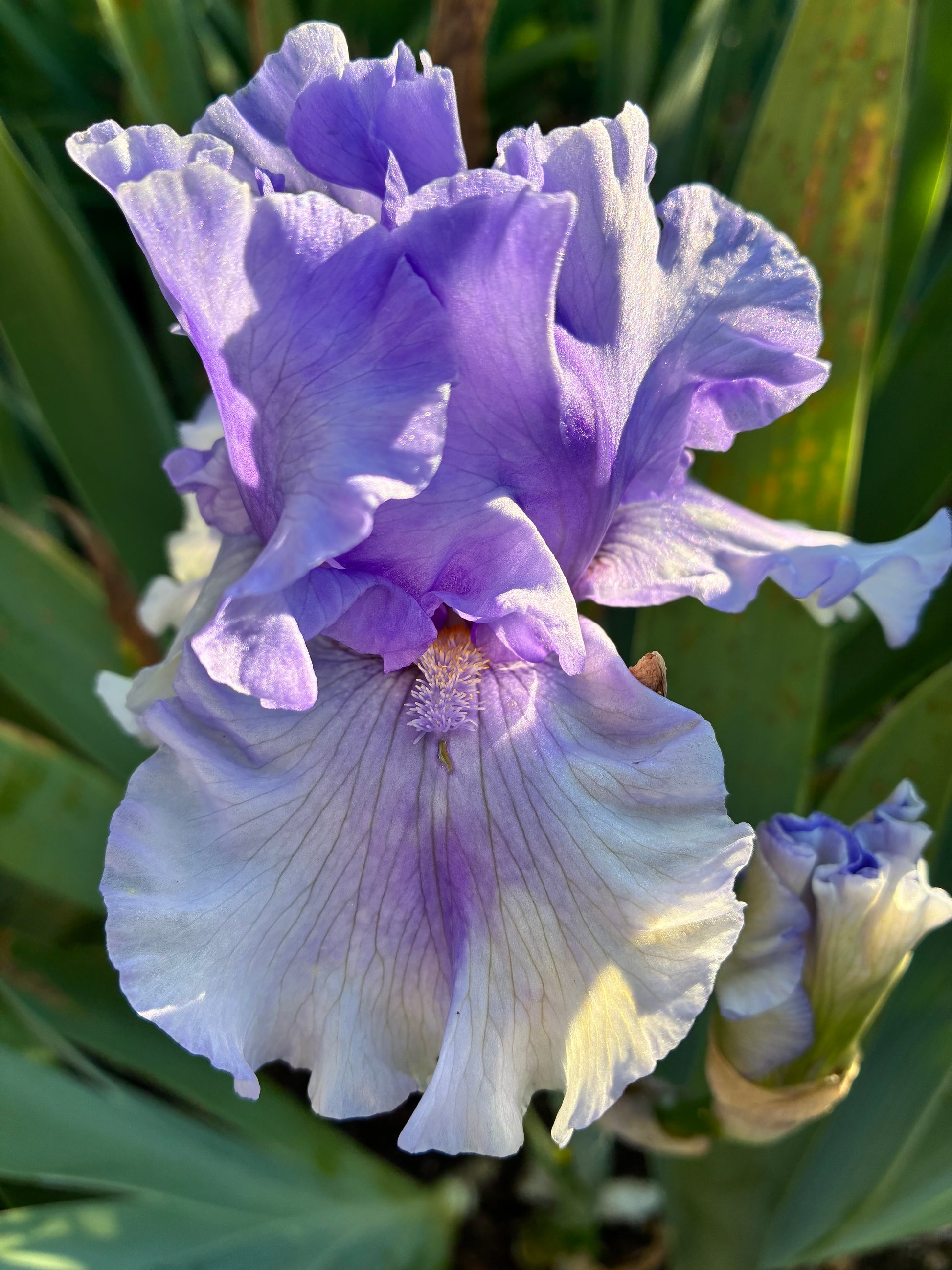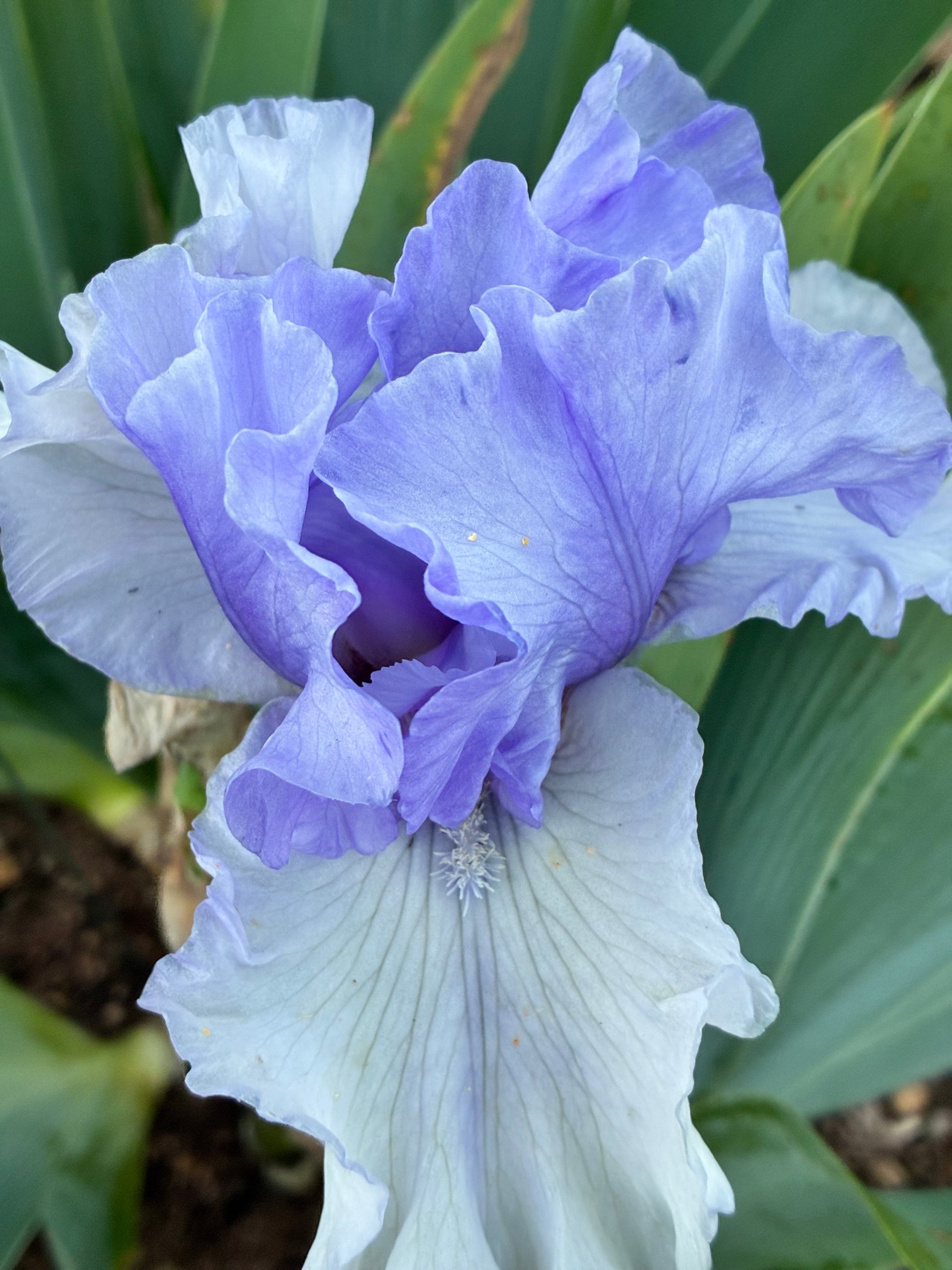 An early bloomer that also reblooms, featuring mid-blue standards and white falls with a subtle blue cast. Its light yellow beard adds a soft sunny contrast. A reliable and charming variety, perfect for extending colour in your garden season.